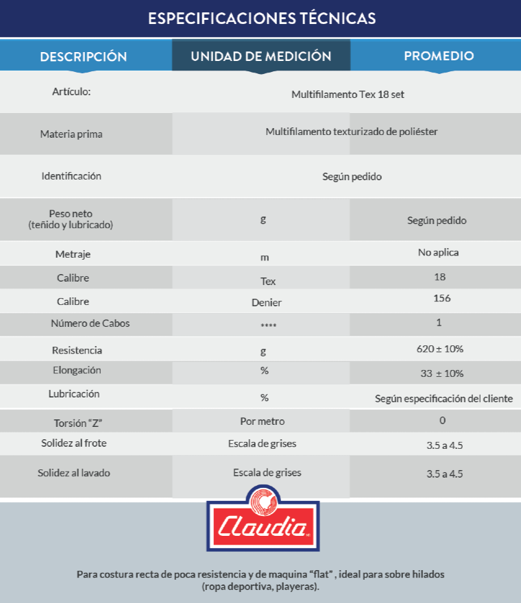 Para costura recta de poca resistencia y de máquinas "flat", ideal para sobre hilados (ropa deportiva, playeras).