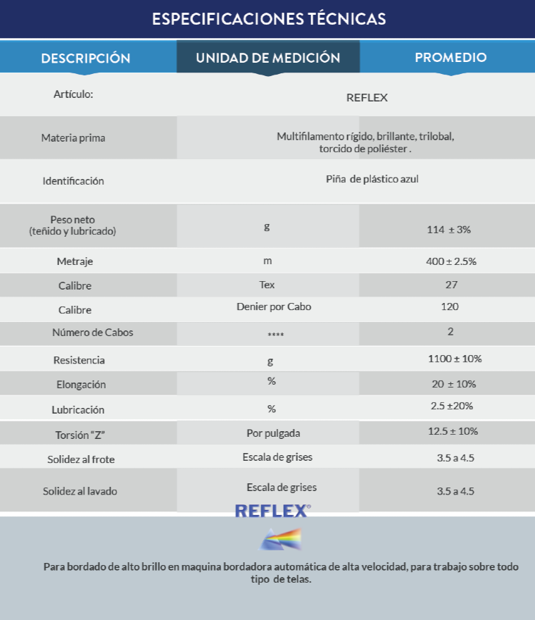 Hilo para bordar de alto brillo en maquina bordadora automática de alta velocidad, para trabajo sobre todo tipo de telas.