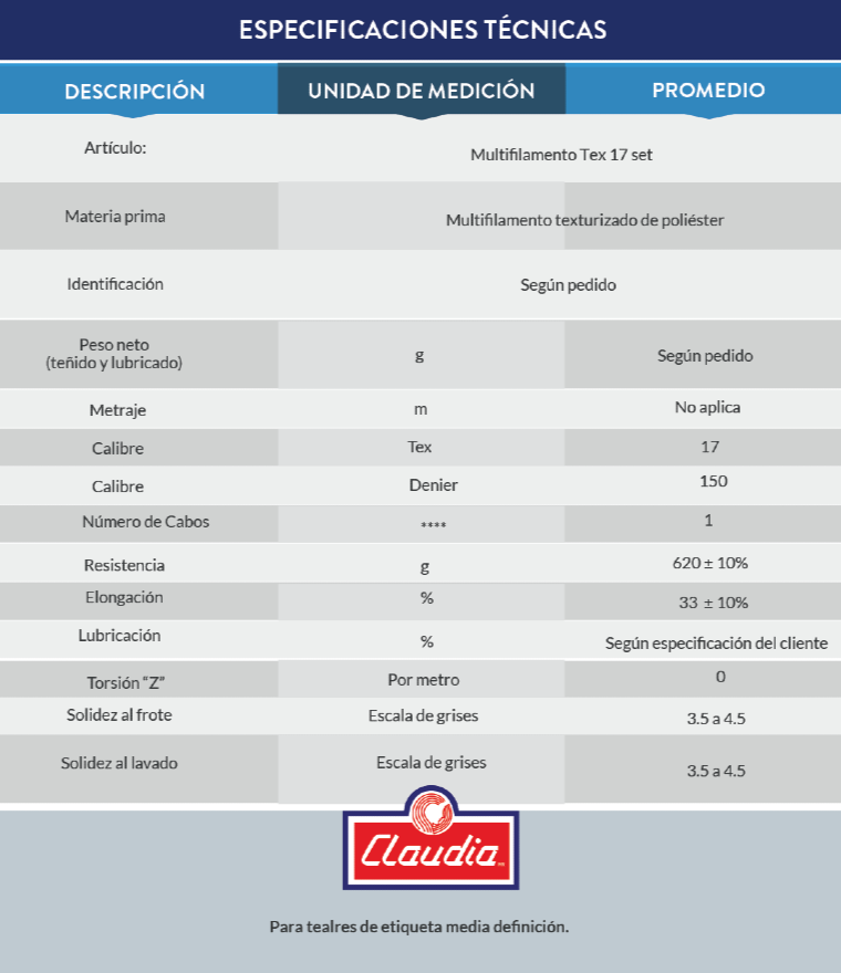 Para costura recta de poca resistencia y de máquinas "flat", máquina over. Ideal para sobre hilados (ropa deportiva, playeras). Para telares de etiqueta media definición.