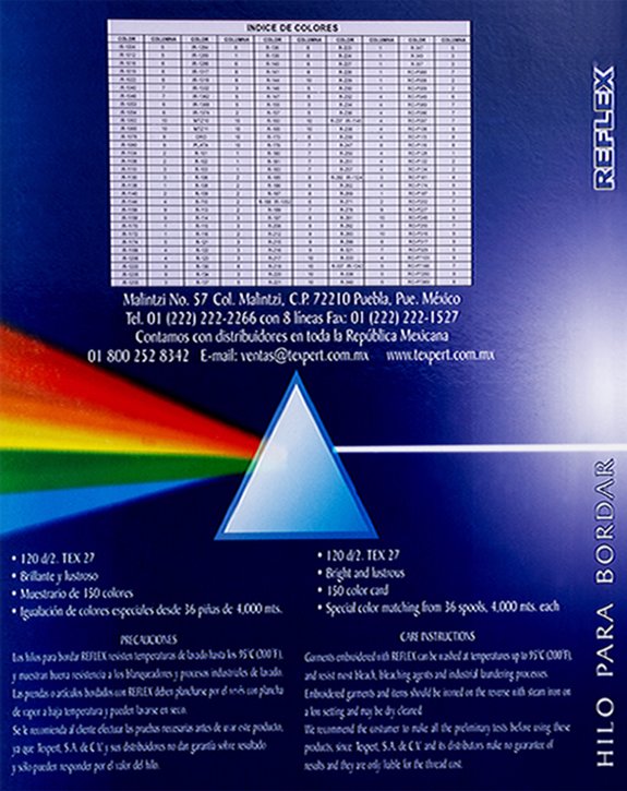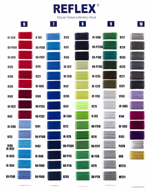 Hilo para bordar de alto brillo en maquina bordadora automática de alta velocidad, para trabajo sobre todo tipo de telas.
